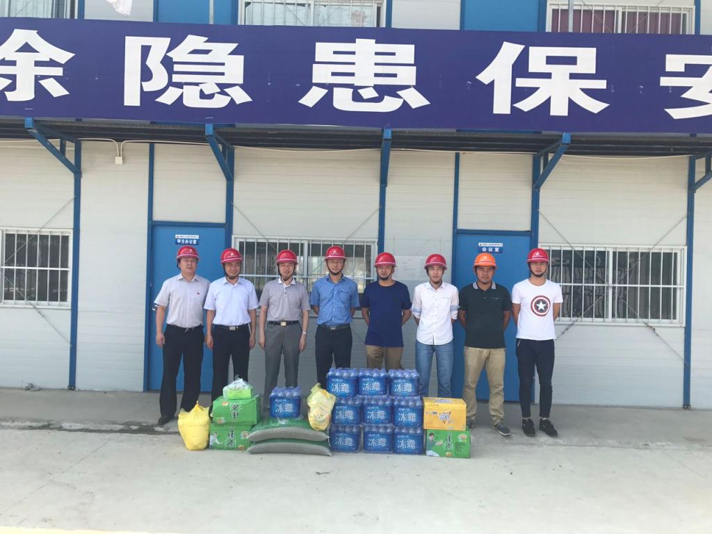 胡書記一行認真聽取了項目部施工現場情況詳細介紹,了解施工進度和下一步施工計劃,仔細詢問了現場防暑降溫工作的落實情況,對在炎熱天氣下工作的員工表示親切的問候,要求項目部合理安排好作息時間,避開高溫時的作業,并把綠豆、白糖、毛巾、礦泉水、風油精、人丹、十滴水等防暑降溫用品送到大家手中,叮囑大家一定要做好防暑降溫工作,在施工現場多配備防暑降溫飲品及藥品,采取各種有效措施,確保員工的身體健康和施工安全。