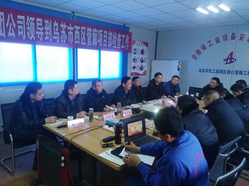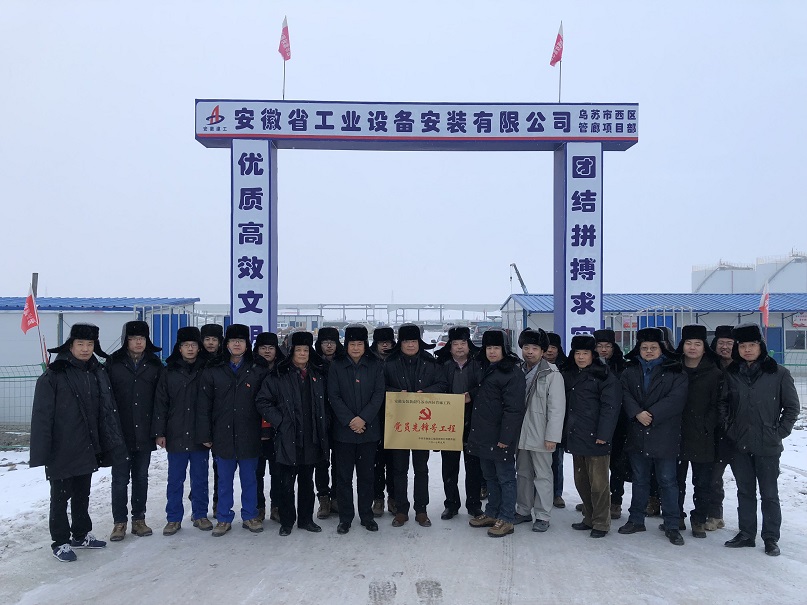 2018年1月12日,集團公司黨委副書記牛曙東、紀(jì)委書記宋志華、黨委工作部主任徐文聯(lián)一行,在零下20度天氣,冒著凜冽的寒風(fēng),迎著飛舞的雪花,踏著濕滑的道路,蒞臨安徽安裝公司新疆烏蘇市工業(yè)園西區(qū)管廊項目驗收“黨員先鋒號”工程創(chuàng)建工作并舉行授牌儀式。集團公司新疆辦事處負(fù)責(zé)人孫仁發(fā),投資公司黨總支書記余志剛,安徽路港公司副總經(jīng)理張俊,安徽安裝公司董事長、總經(jīng)理、黨委副書記王軍邦,總經(jīng)理助理、西北分公司經(jīng)理、新疆辦事處主任王軍陪同。創(chuàng)建驗收會議由徐文聯(lián)主持。
