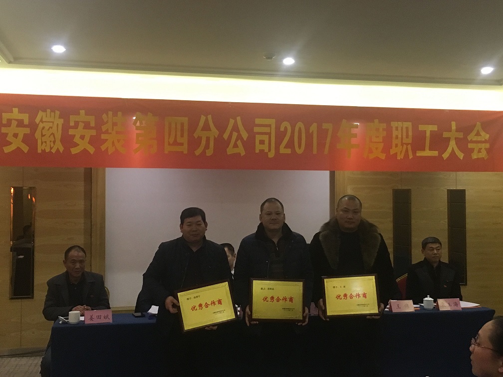2018年2月1日上午,安徽安裝第四分公司召開2017年度職工大會。公司黨委書記、副總經(jīng)理胡六中,紀(jì)委書記、工會主席李寬旭應(yīng)邀出席了大會。