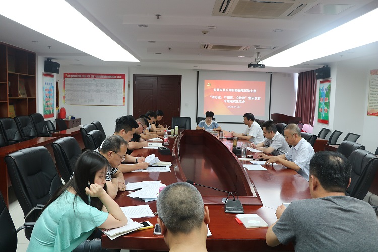 8月10日下午,后勤保障部黨支部在公司十六樓會議室召開“講忠誠、嚴紀律、立政德”警示教育專題組織生活會,公司黨委書記、副總經理胡六中,紀委書記、工會主席李寬旭出席會議,會議由黨支部書記趙榮珣主持。