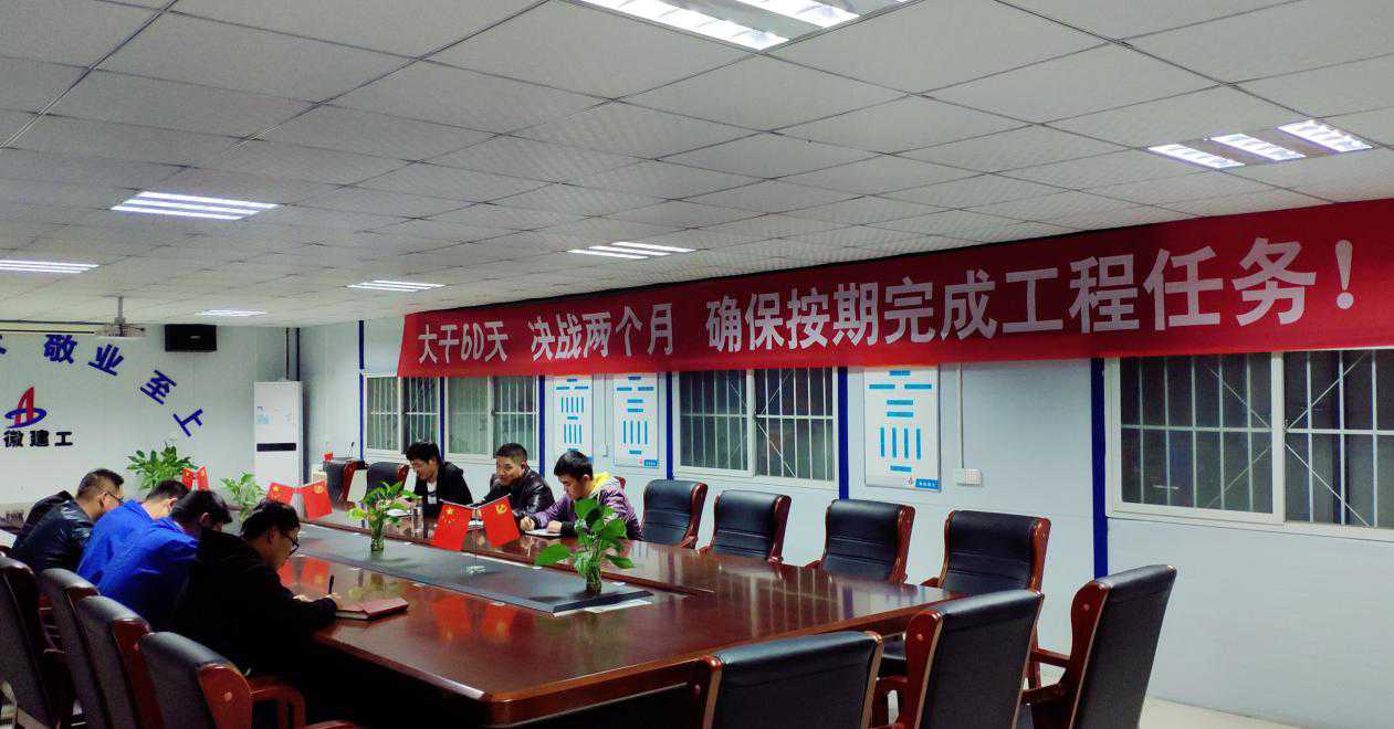 為激發項目員工積極性與創造性,確保2018年底前施工任務的順利完成,第一分公司阜陽國幀城南新區供熱首站機電安裝工程項目部積極響應公司號召,開展勞動競賽活動。11月12日項目部召開了“大干60天”勞動競賽活動動員會,掀起了大干快上的施工熱潮。