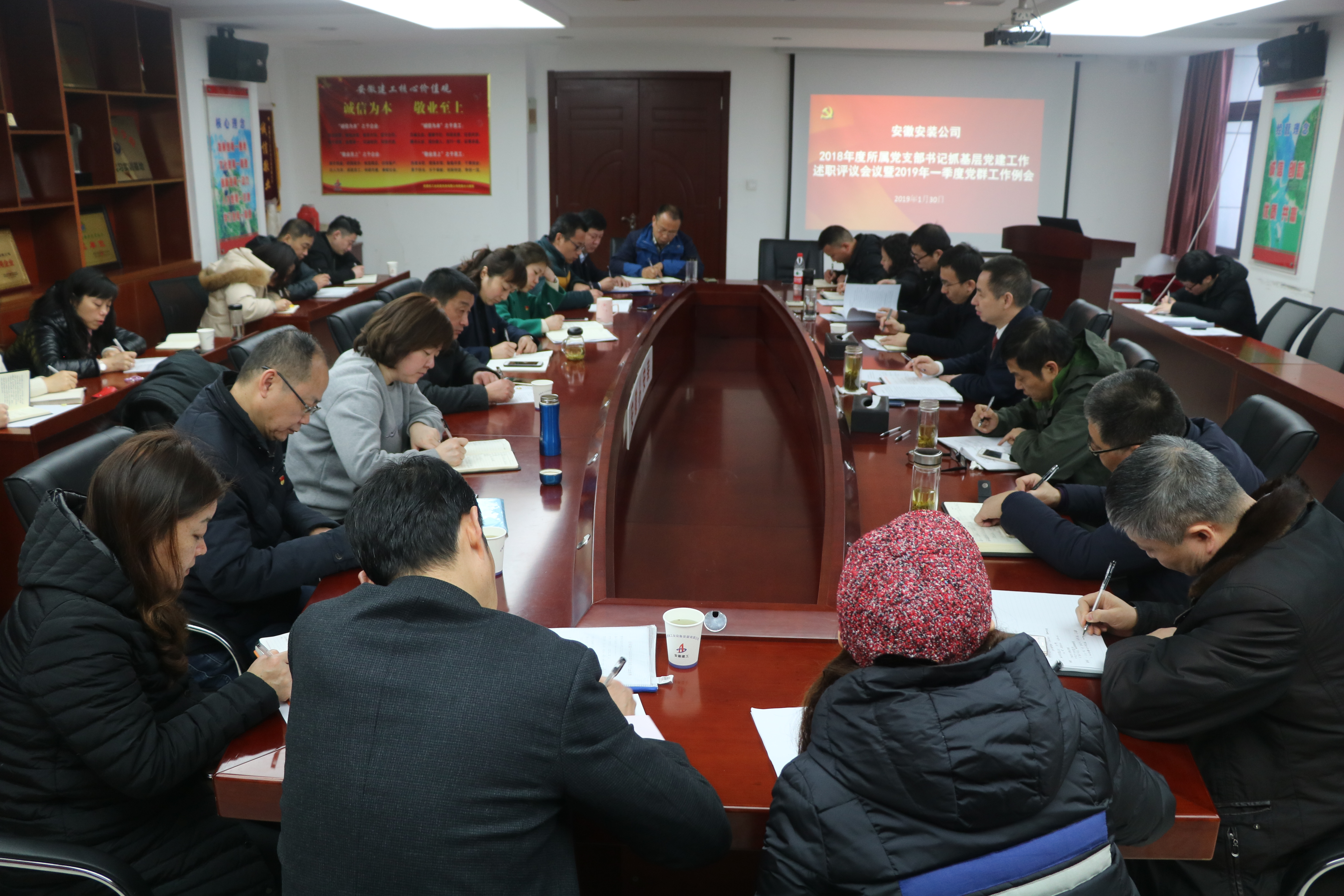 1月30日上午,安徽安裝公司組織召開2018年度所屬黨支部書記抓基層黨建工作述職評議會議。會議由公司黨委書記、董事長胡六中主持。集團公司黨委工作部楊光兵到會指導。公司領導班子成員,基層黨支部書記、工會主席、團支部書記及公司黨群部門人員參加了會議。