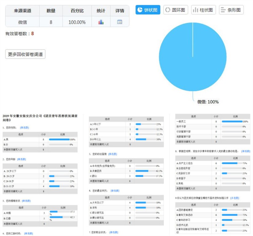 隨后,為進一步深入了解青年員工思想、工作、生活狀況,根據新時期青年思想特點,結合分公司實際情況,團支部利用手機微信掃碼方式在會議現場對每位青年員工進行了思想狀況調查。團支部將根據統計分析報告,針對大家所需所想,廣泛開展形式多樣、內容豐富的集體活動。