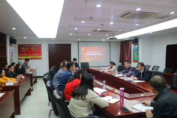 會上,所屬各黨支部圍繞扎實開展“不忘初心、牢記使命”主題教育、推動省委巡視反饋問題整改、慶祝新中國成立70周年系列活動、支部其他重點工作、支部中存在的不足及四季度主要工作計劃進行交流匯報。隨后公司黨群部門對四季度主要工作進行了布置。