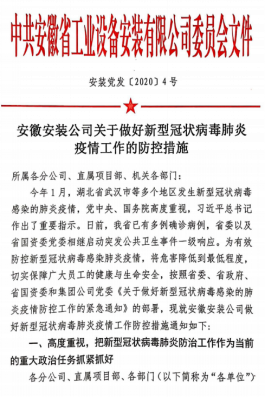 安徽安裝公司將在集團公司黨委的堅強領導下,進一步強化宣傳,細化措施,以有利于職工群眾生命健康、有利于維護社會安全穩定,有利于防控精準落實的原則,攻堅克難,共赴時艱,保障職工群眾的生命安全和身體健康。