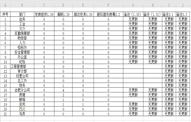 四是日報制度。自1月26日起實行日報制度,各分公司、各部門認真做好登記,確保信息及時準確,形成春節休假期間上下聯動、聯防聯控的疫情防控工作格局。