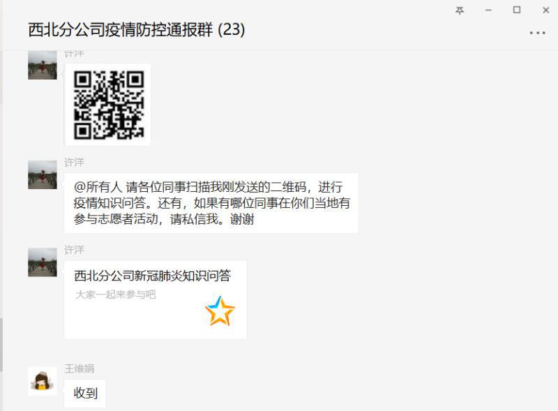 為提高廣大員工對(duì)新冠肺炎的了解,提高防控意識(shí),掌握防控要點(diǎn),共同打贏疫情防控阻擊戰(zhàn),2月14日,西北分公司工會(huì)組織開(kāi)展了新冠肺炎疫情防控知識(shí)網(wǎng)絡(luò)答題活動(dòng)。