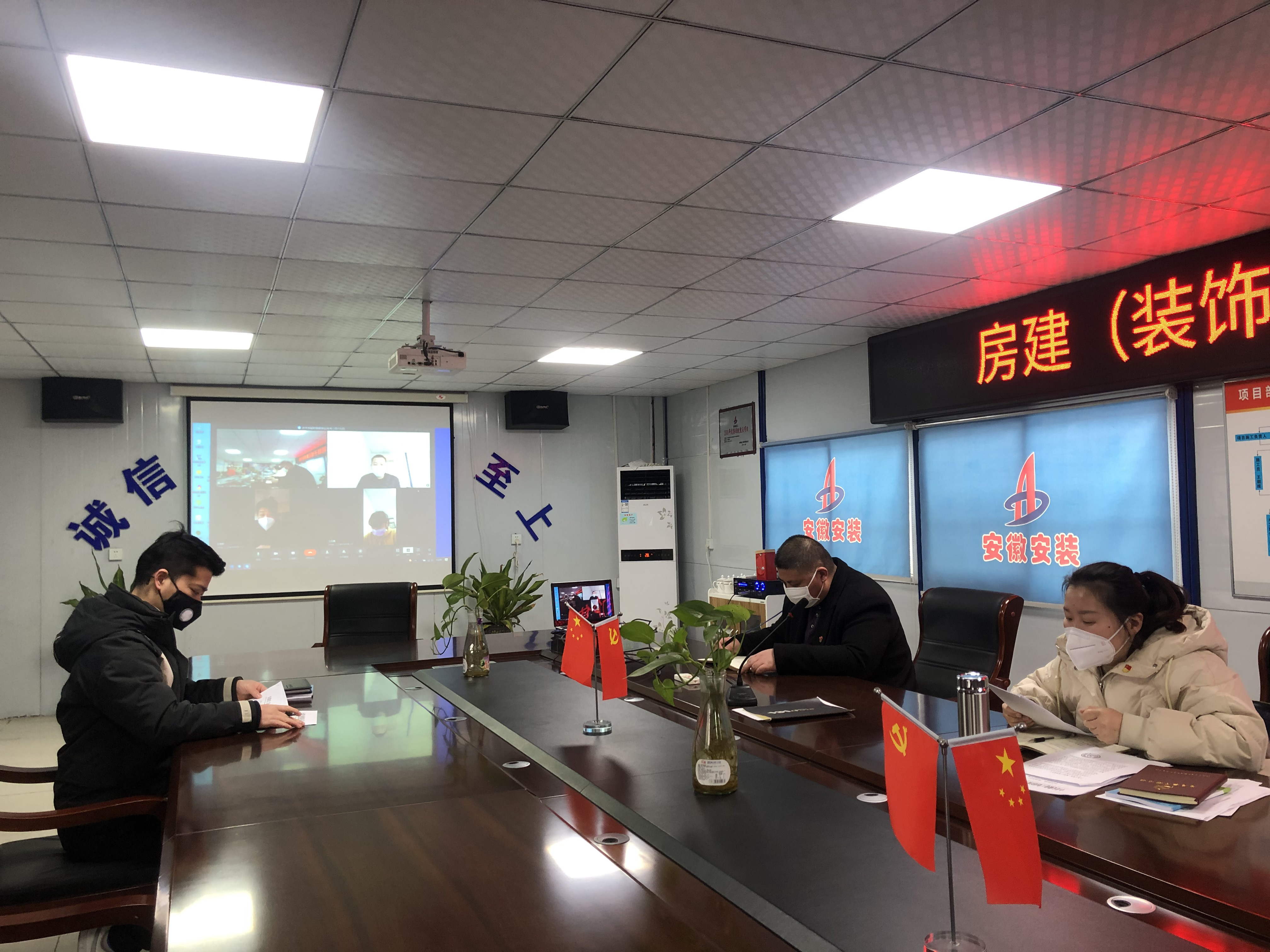 2月28日下午,房建(裝飾)分公司黨支部在阜陽潁東區(qū)中醫(yī)院建設(shè)PPP項(xiàng)目部會(huì)議室召開班子理論集體學(xué)習(xí)暨新冠肺炎疫情防控專題學(xué)習(xí)視頻會(huì),分公司黨支部副書記張曼主持會(huì)議,分公司黨支部班子理論學(xué)習(xí)成員參加會(huì)議。