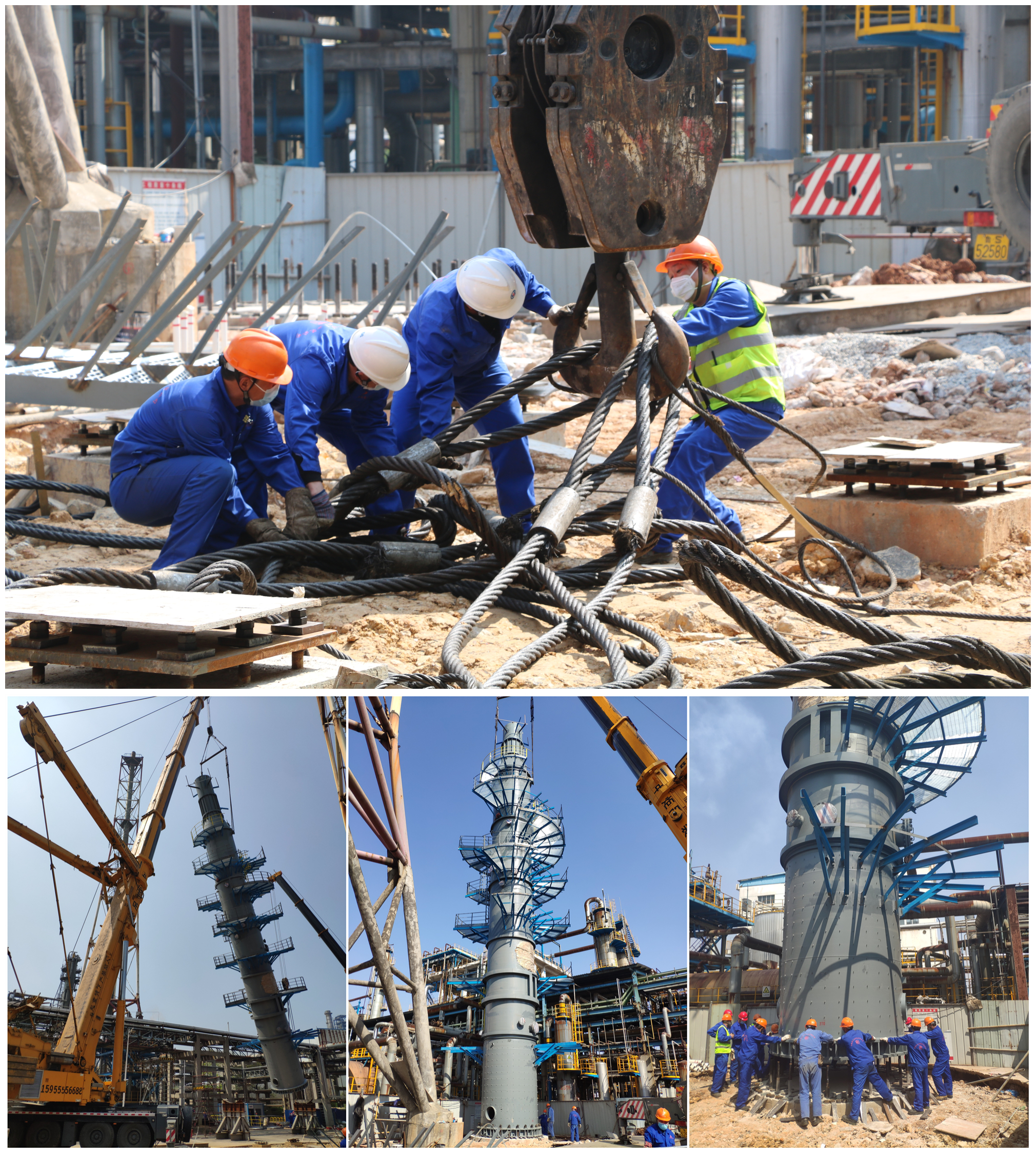 安慶石化項目部Ⅰ、Ⅱ硫磺回收裝置增設煙氣后堿洗流程項目大型設備吊裝圓滿成功