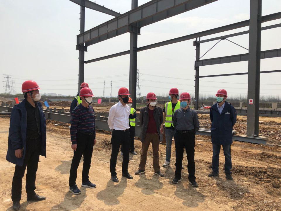 上午,胡六中一行驅(qū)車來到了蕪湖宇培鋼結(jié)構(gòu)安裝工程項目部,接受體溫檢查后進入到項目部辦公生活區(qū),首先對項目部辦公區(qū)、生活區(qū)的消毒消殺、防控措施、防控物質(zhì)儲存、食堂和職工宿舍環(huán)境衛(wèi)生以及日常體溫檢測、消殺記錄等情況進行了現(xiàn)場查看,充分肯定了項目部在疫情防控方面所做的大量務實工作,并提出了意見和建議。隨后在分公司領(lǐng)導和項目部同志的陪同下,來到蕪湖宇培鋼結(jié)構(gòu)廠房建設(shè)工地,仔細查看了工程的進度、質(zhì)量、安全的管理狀況,并對項目部大力開展勞動競賽,促進度、搶工期、促質(zhì)量、保安全,全面提升項目經(jīng)濟效益的做法給予充分肯定。