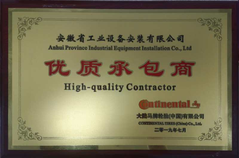 安徽安裝公司喜獲大陸馬牌輪胎(中國)有限公司“優質承包商”和“36萬安全工時”榮譽