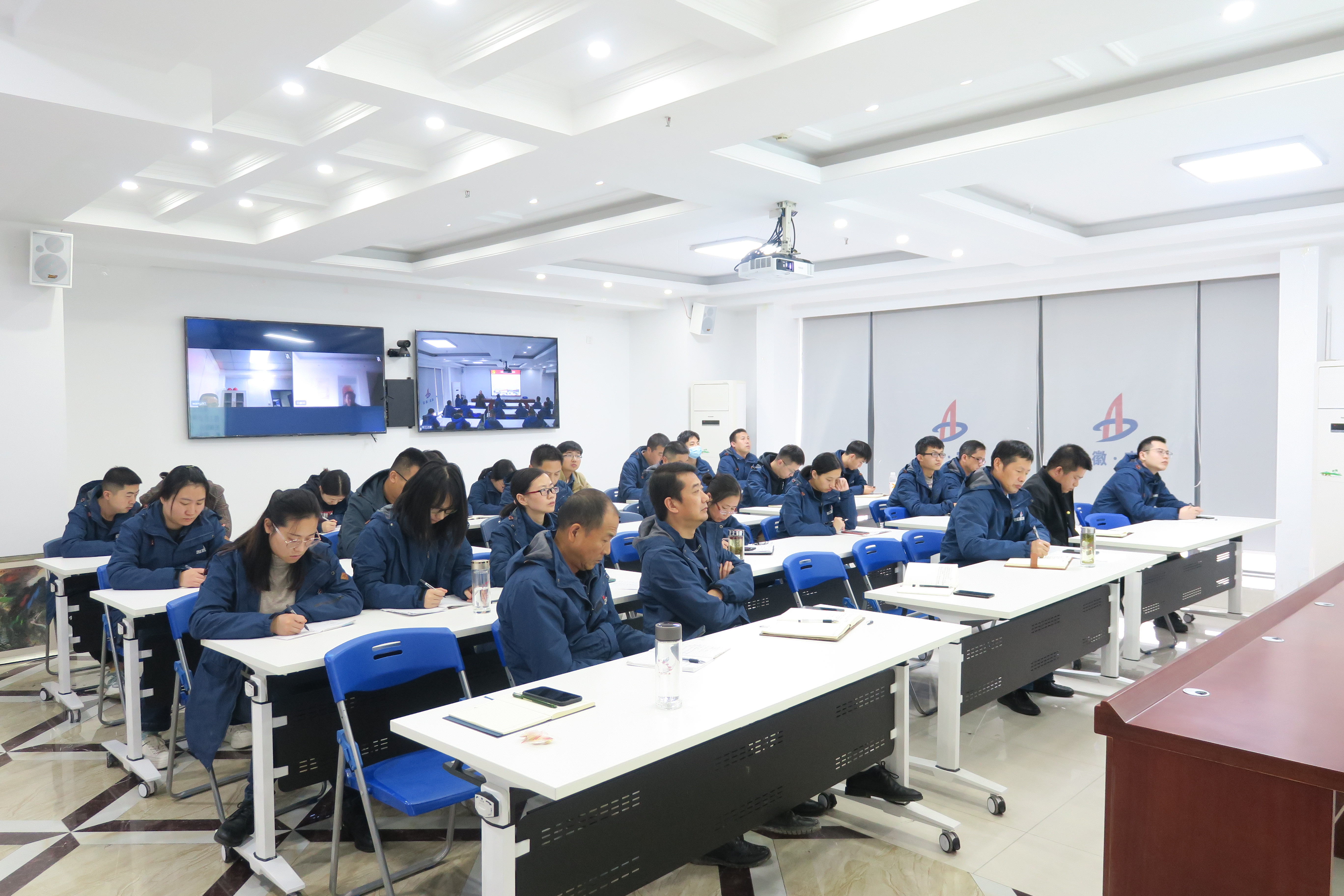 11月19日下午,公司機(jī)關(guān)第二黨支部書記姚春靜赴合肥分公司作題為《練好內(nèi)功·干出亮點(diǎn)·走在前列 以高質(zhì)量黨建助推公司高質(zhì)量發(fā)展——深入學(xué)習(xí)貫徹習(xí)近平總書記考察安徽重要講話精神》專題黨課,分公司領(lǐng)導(dǎo)班子成員、支部黨員、入黨積極分子、青年團(tuán)員、機(jī)關(guān)及在肥人員共40余人參加了會(huì)議。會(huì)議以視頻的方式進(jìn)行,主會(huì)場(chǎng)設(shè)在公司職工之家,靈璧項(xiàng)目部、潛山項(xiàng)目部設(shè)立了分會(huì)場(chǎng)。