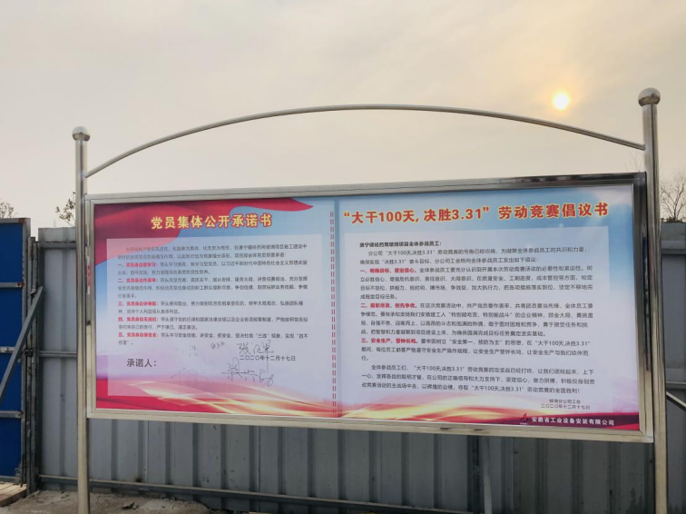 這是一場(chǎng)一開(kāi)始就注定與時(shí)間賽跑的戰(zhàn)斗,這也是對(duì)安徽安裝蚌埠康寧項(xiàng)目部全體參戰(zhàn)人員攻堅(jiān)克難、敢打能勝的全面檢驗(yàn)。2020年12月8日,康寧項(xiàng)目部召開(kāi)“大干100天  決戰(zhàn)決勝3.31”勞動(dòng)競(jìng)賽啟動(dòng)大會(huì),全面吹響大干快上的總號(hào)角。公司副總經(jīng)理高飛、劉安俊分別作動(dòng)員講話,要求全體參建人員要凝心聚力、統(tǒng)一思想,全力以赴,嚴(yán)格按照“高標(biāo)準(zhǔn)起步,高質(zhì)量建設(shè)、高效率推進(jìn),高層次達(dá)標(biāo)”的總要求,創(chuàng)新管理模式、集中優(yōu)勢(shì)資源、統(tǒng)籌推進(jìn)各項(xiàng)工作,全力以赴建好項(xiàng)目,樹(shù)立企業(yè)良好形象。