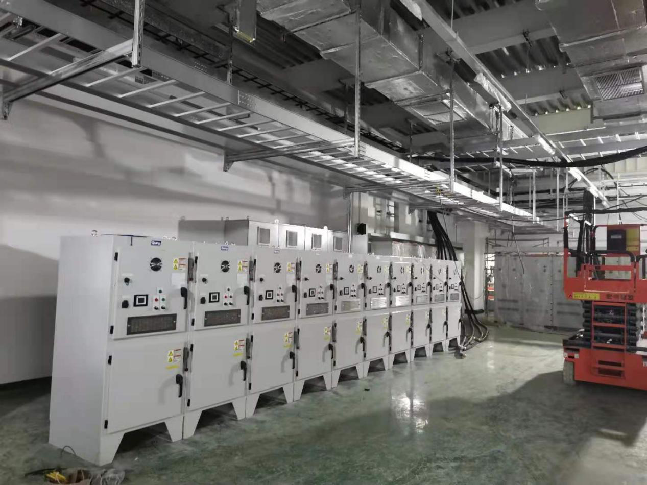 圖為配電房內(nèi)的配電柜已全部定位待接線安裝