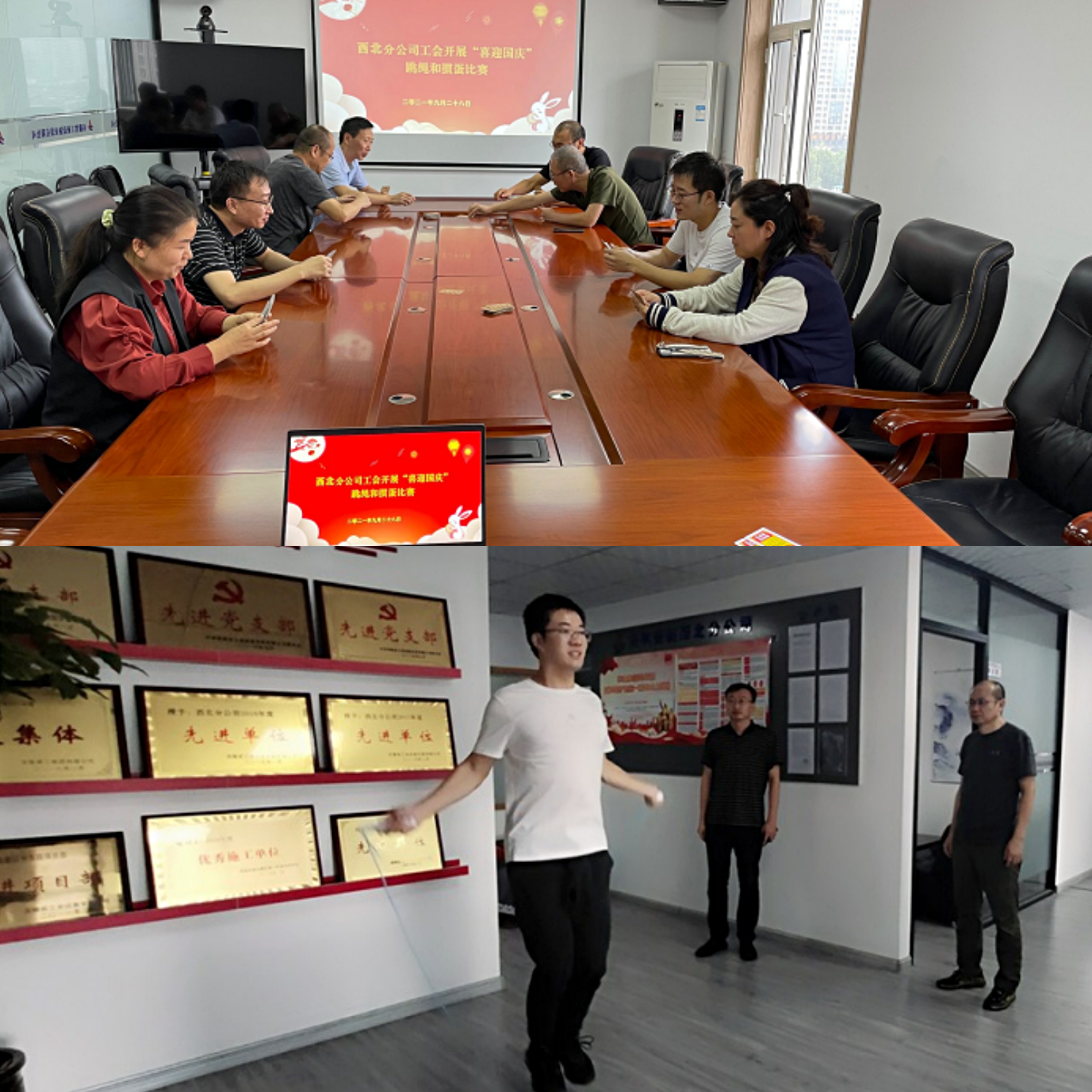 9月28日上午,西北分公司工會組織開展“喜迎國慶”跳繩和摜蛋比賽。跳繩活動現(xiàn)場氣氛熱烈,喝彩聲此起彼伏,摜蛋比賽大家圍成一桌,你一言我一語,各顯牌技。活動的開展能強化職工快樂工作、生活的意識,激發(fā)廣大職工以更加飽滿的熱情與斗志投入到今后的工作中去。