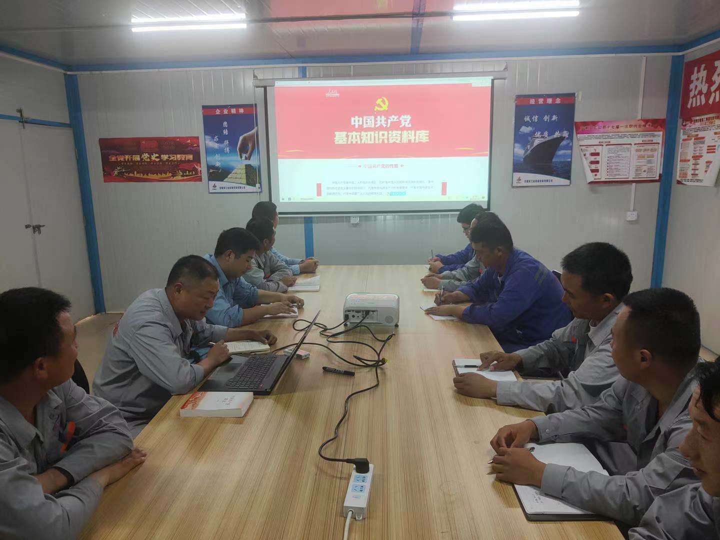 項目部積極響應公司黨史學習教育要求,促進黨史學習充分融入生產一線,營造出濃厚的“學黨史、促生產”的良好氛圍。5月1日,項目部開展了黨史學習教育交流會,會上項目部黨員皮軍同志帶領大家集中學習了《中國共產黨基本知識》并開展了黨史學習交流討論。5月4日,項目部組織團員青年通過線上觀看節目的方式觀看了由共青團中央、全國學聯舉辦的“學黨史、強信念、跟黨走”大型網絡直播主題云團課學習活動,在歌聲中感受激情燃燒的光輝歲月,在影像影視中見證時代的發展、歷史的變遷。