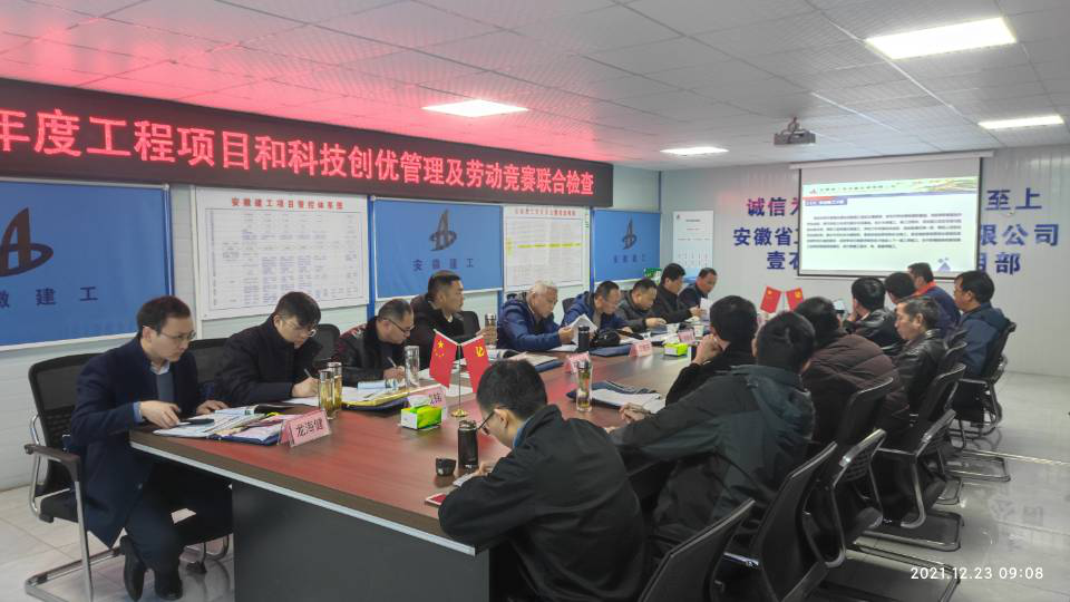 根據集團公司關于開展2021年工程項目管理、科技創優管理和勞動競賽聯合檢查工作的安排,12月23日上午,集團公司工程管理部(安全監察局)督查員范毓慶率項目管理、科技創優管理和勞動競賽專家組赴安徽安裝房建(裝飾)分公司壹石通項目開展綜合檢查工作,公司副總經理趙伯平,工程管理部、安全管理部、總工辦等部門負責同志參加本次檢查。