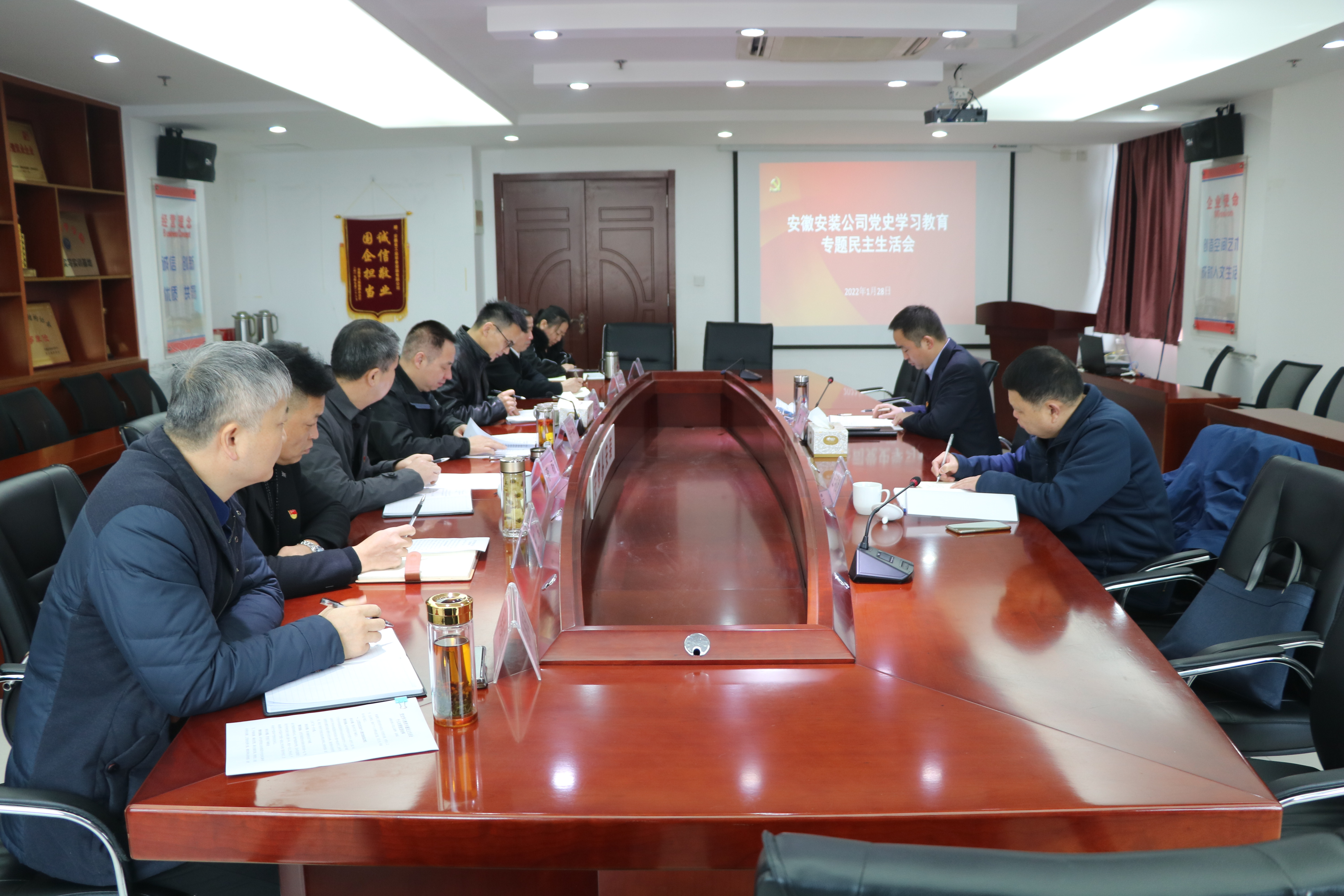 1月28日上午,安徽安裝黨委召開黨史學習教育專題民主生活會。股份公司黨委委員、副總經理黃代,集團黨史學習教育第一指導組組長王可武到會指導。安徽安裝領導班子成員參加會議,會議由公司黨委書記、董事長胡六中主持。