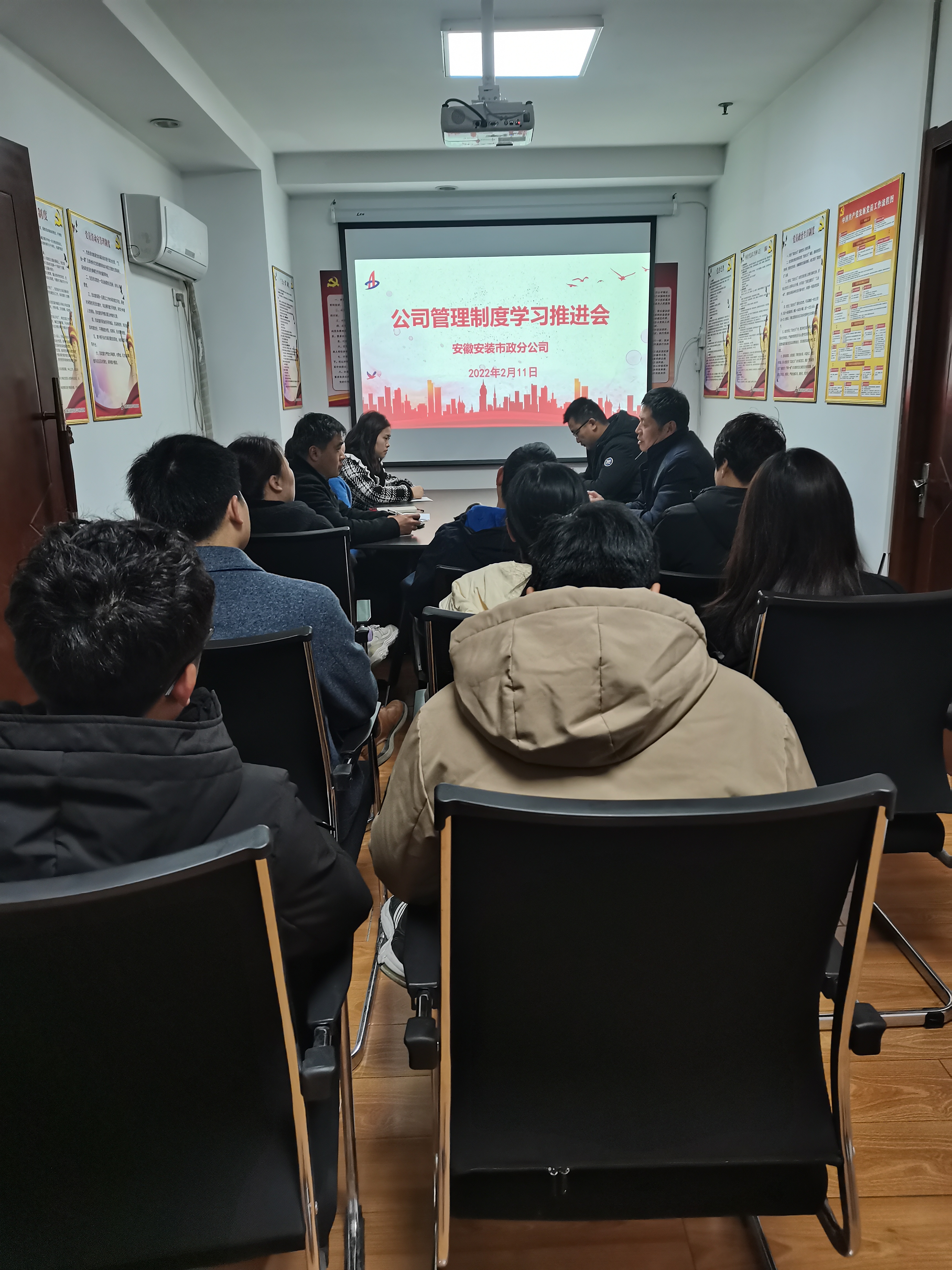 為貫徹落實集團和公司兩級職代會精神,強化“基礎管理年”制度體系建設,夯實工程項目管理基礎,進一步提高分公司管理干部對公司管理制度的理解力和執(zhí)行力,建立邊界清晰、權責明確、流程優(yōu)化、風險可控的內(nèi)部控制體系,2月11日上午,市政分公司在分公司會議室召開公司管理制度學習會,會議由黨支部書記胡迎東主持,分公司全體人員參會。
