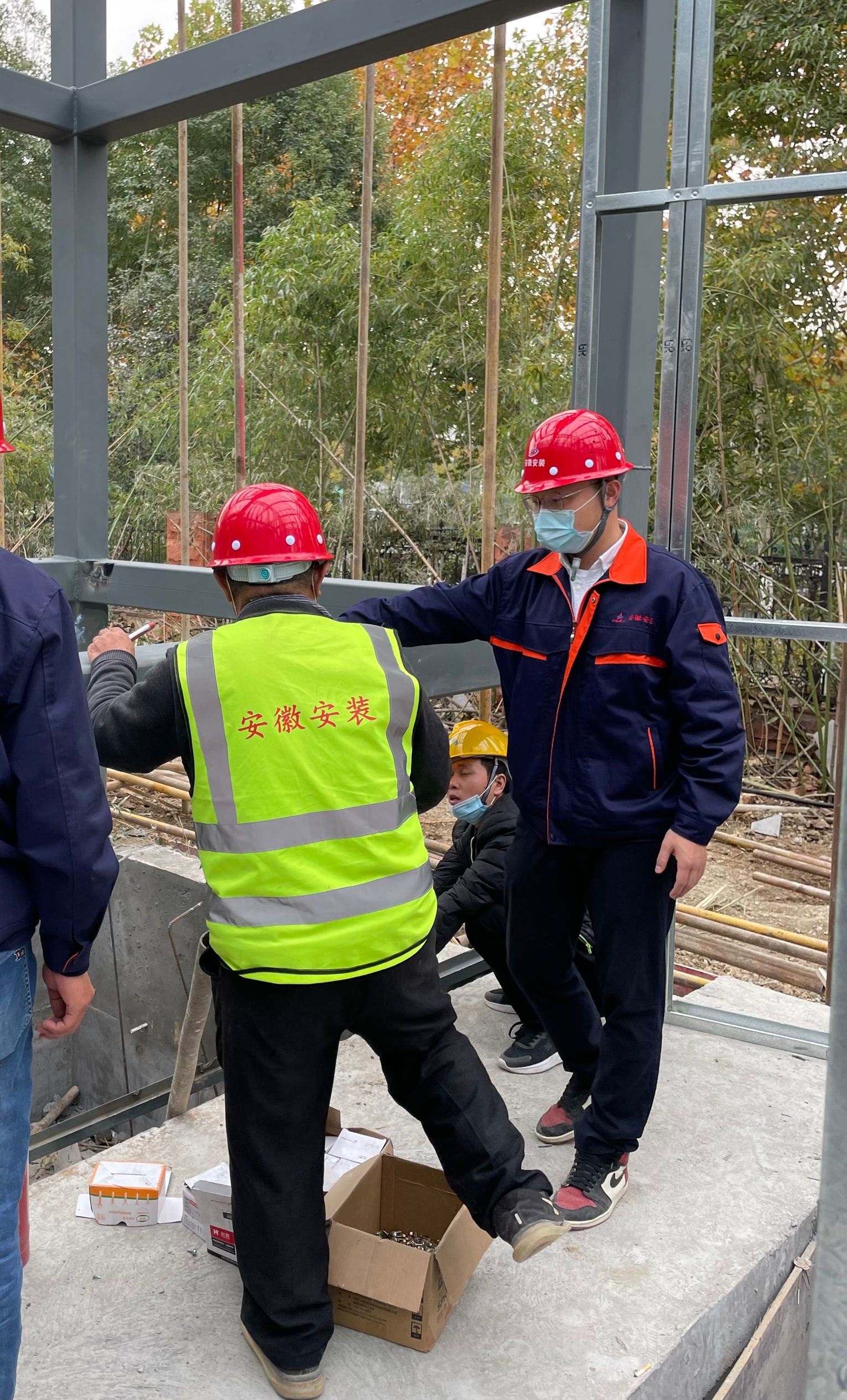 ·項目安全員吳萌萌,自項目開工以來,今天已是他夜晚通宵加班的第7天了。“項目安全問題不容忽視,尤其是搶工的項目,大家都急,這個時候保障安全更為重要”,作為項目上最年輕的同志,他清秀的臉龐上滿是責任與擔當。由于項目現場工期緊,鋼筋綁扎、澆筑混凝土、安裝主鋼構、壓型金屬板等工作都需要夜間搶工進行,夜間施工視線條件差,對安全管理的要求更高,吳萌萌主動承擔起夜間安全管理的工作任務,整夜守在項目現場,嚴格做好施工現場的各項安全工作。深秋時節,早晚溫差大,晚上很是寒涼,干活累了餓了,夜間就把晚上吃剩的盒飯就著冰涼的礦泉水接著吃了,他一如既往,在項目一線堅持蹲守,從黑夜到黎明,絲毫不敢放松。
