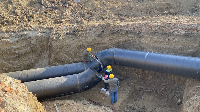 工藝管道班組也在忙忙碌碌,壓縮空氣管道在不斷架設(shè),料場加工好的管道在吊車、葫蘆的牽引下就位,專業(yè)的焊工進(jìn)行焊接,慢工出細(xì)活,保證每一道焊口符合規(guī)范要求,室外的循環(huán)水管也在與老廠的接口緊張對接。