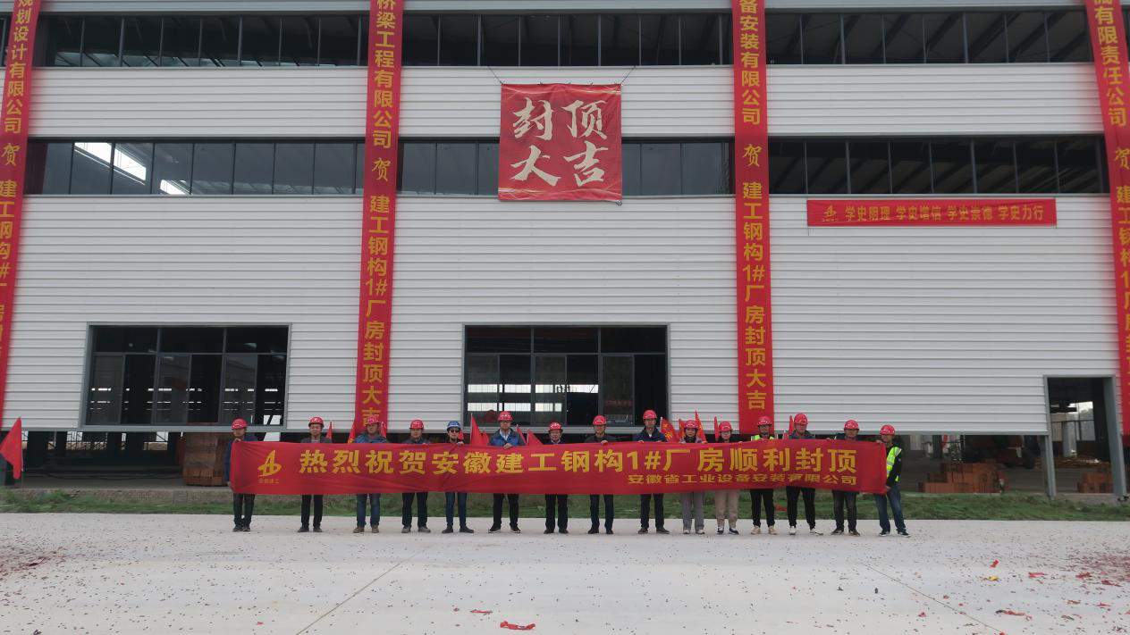 大干四季度,起航再?zèng)_鋒。12月8日上午,隨著最后一片屋面板的鋪設(shè)完成,合肥分公司建工鋼構(gòu)項(xiàng)目1#廠房順利封頂,標(biāo)志著建工鋼構(gòu)項(xiàng)目主體施工全部完成。安徽路橋橋梁分公司黨總支書(shū)記、副總經(jīng)理劉振嶺、公司總經(jīng)理助理、合肥分公司黨支部書(shū)記、經(jīng)理趙永峰等出席封頂儀式。與項(xiàng)目部全體員工共同見(jiàn)證這一重要時(shí)刻。