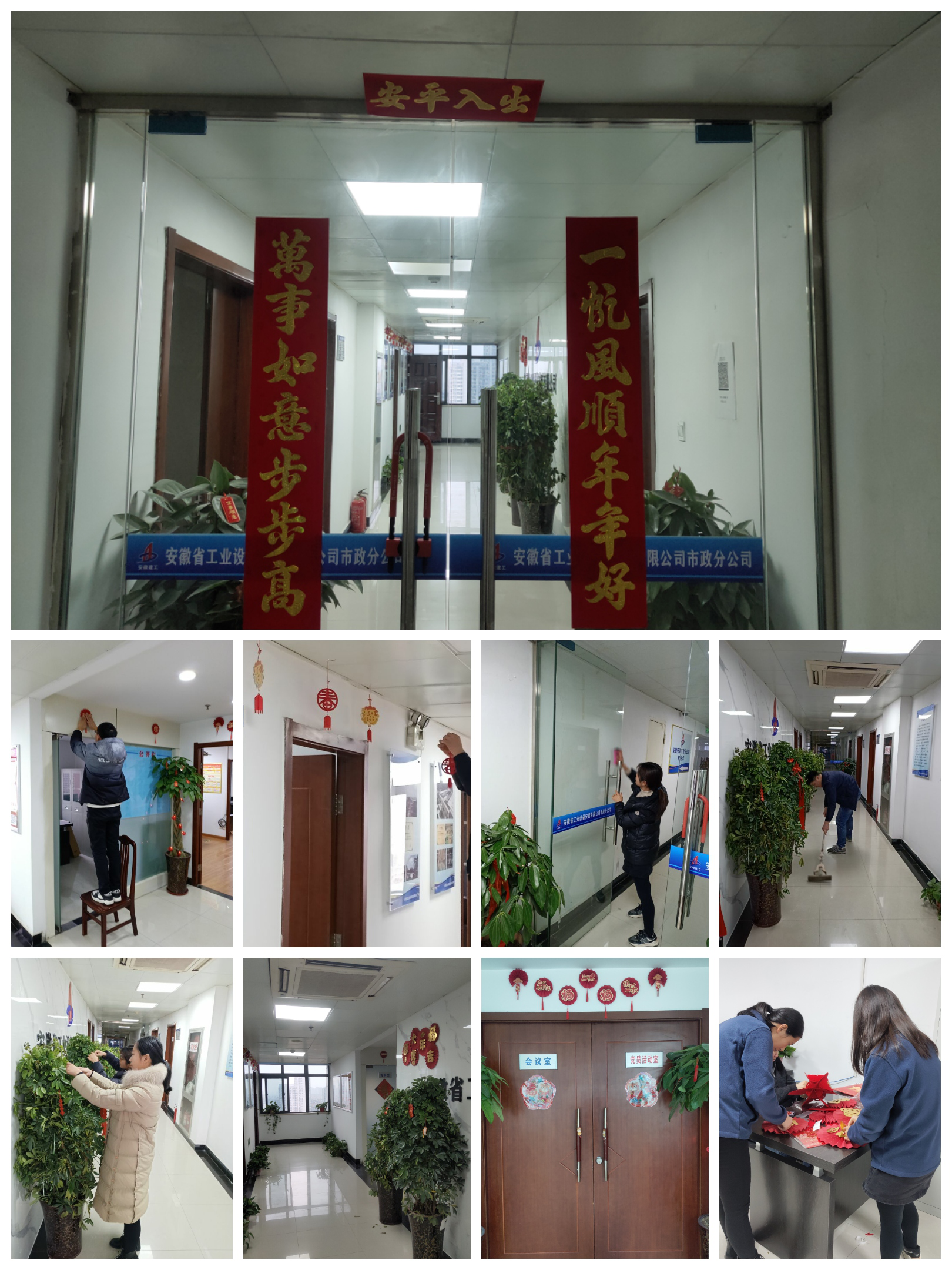 作為市政分公司掛牌成立后的第一個春節(jié),工會提前準備好拉花、拉旗等喜慶裝飾物,號召機關(guān)青年、團員自己動手張貼。此次活動得到大家的積極響應(yīng),員工們齊心協(xié)力、分工協(xié)作對辦公區(qū)域進行衛(wèi)生清潔與氛圍裝點,在機關(guān)走廊懸掛喜慶裝飾品,讓分公司處處充滿濃濃年味,紅紅火火、喜氣洋洋地迎接新一年的到來。