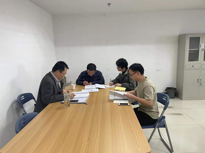集團總工辦陶雙龍首先是仔細查看了省級企業技術中心申請資料,對申報資料中企業的行業地位和竟爭力、企業的技術優勢、企業的創新現狀和成績、產學研技術服務、標準參編等內容提出了修改和增補建議;隨后審查公司“高大薄壁環保設備安裝關鍵技術研究”立項可行性報告,認為技術路線可行,同時對我公司其他科研立項給出了指導性建議。