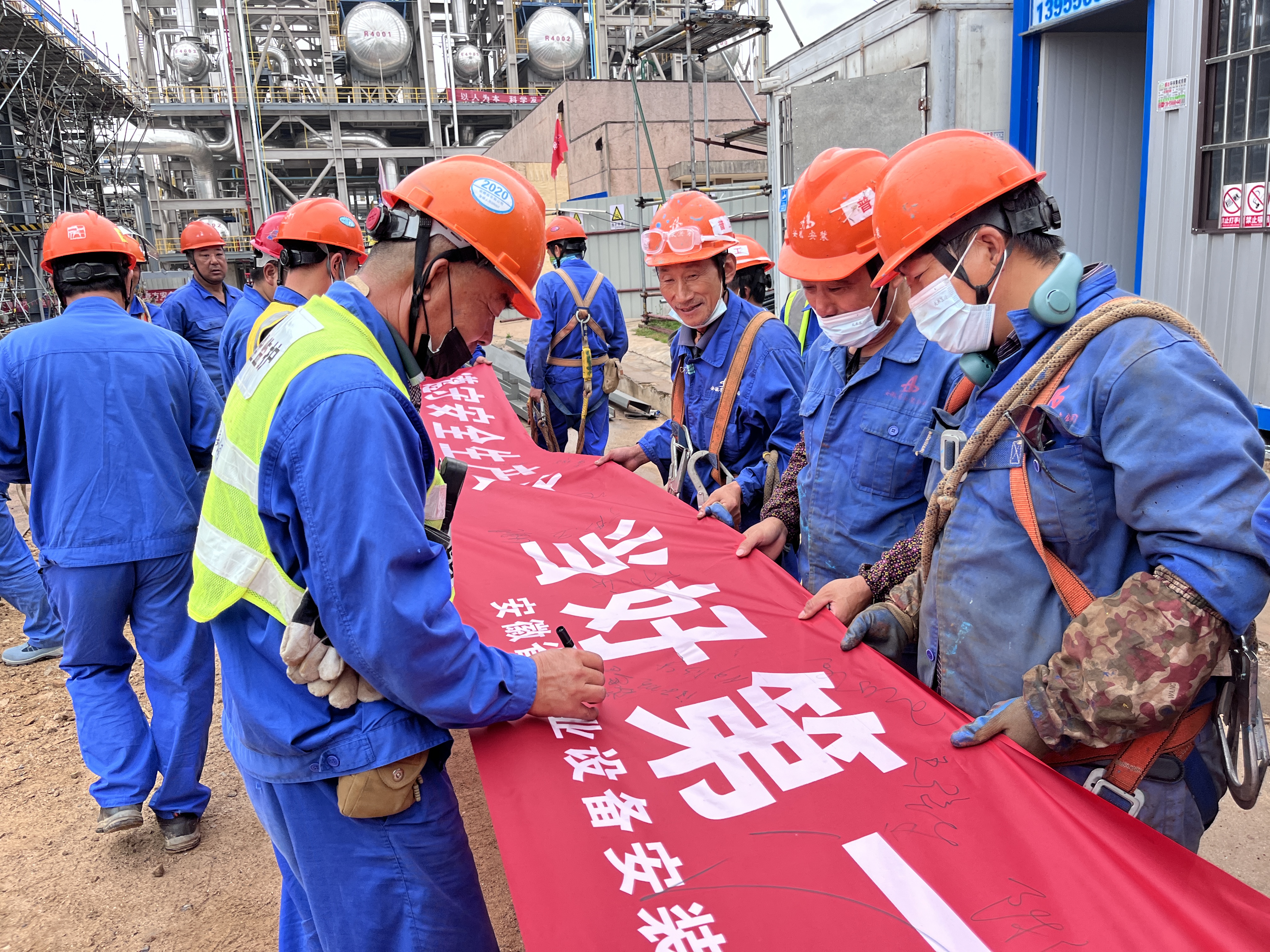 6月1日,開展安全月啟動儀式,分公司安全科組織在建項目污水汽提、煉油轉化工四標段、PSA改造項目、腈綸區等項目同時舉行宣誓簽字儀式。