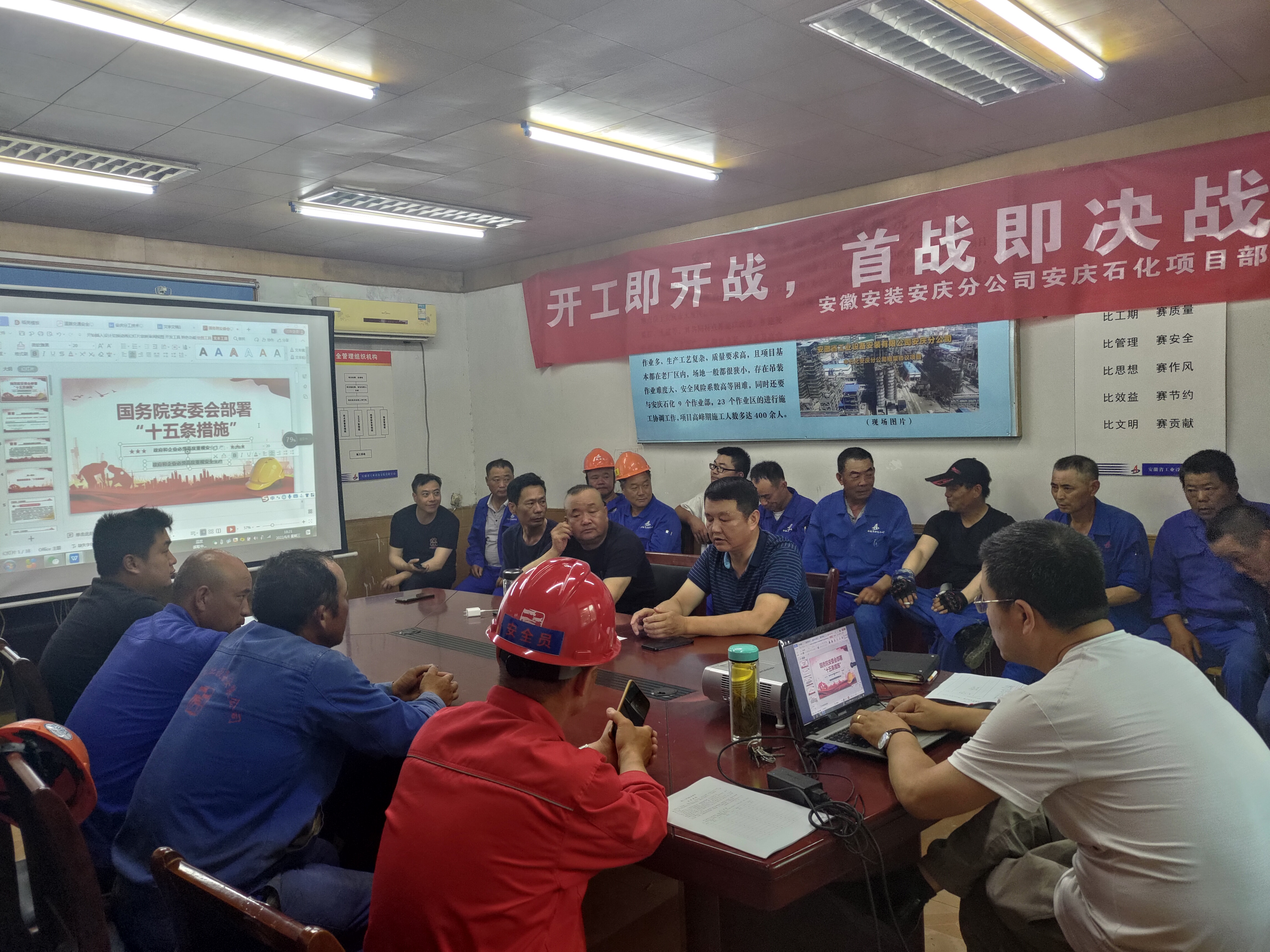 6月8日,在安慶石化項目部開展安全月集中宣講、培訓輔導活動,結合項目特點,對國務院十五條措施、新安全生產法、安慶石化交通安全、7+1直接作業環節管控等進行講座。