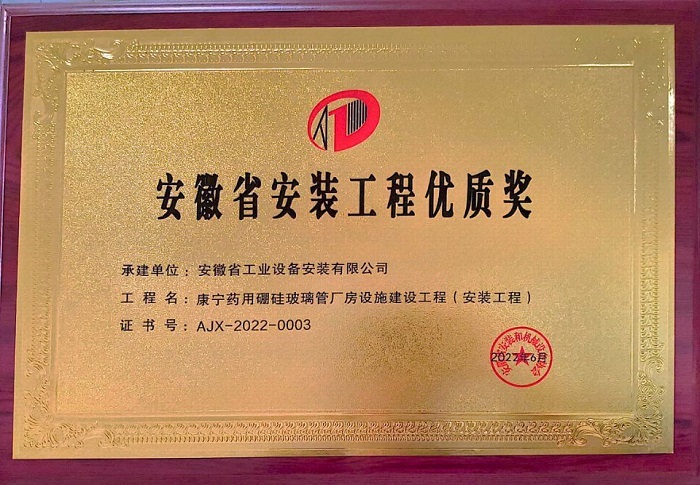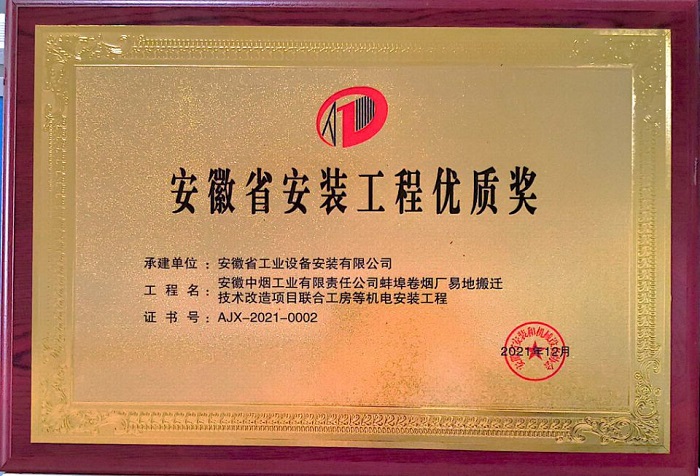 近日,安徽省安裝和機械設備協會第八屆會員代表大會在合肥順利召開,會議頒發了“2021-2022年安徽省安裝工程優質獎”,我單位承建的安徽省中煙工業有限責任公司蚌埠卷煙廠易地搬遷技術改造項目聯合工房等機電安裝工程、康寧藥用硼硅玻璃管廠房設施建設工程(安裝工程)分別榮獲2021年度“安徽省安裝工程優質獎”、2022年度“安徽省安裝工程優質獎”榮譽稱號。