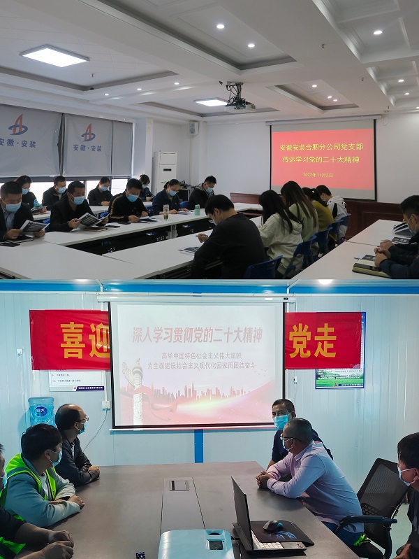 11月2日,安徽安裝合肥分公司黨支部召開黨員大會,專題學(xué)習(xí)黨的二十大精神。分公司黨支部堅持黨建引領(lǐng),把學(xué)習(xí)好、宣貫好黨的二十大精神作為當(dāng)前和今后一個時期的首要政治任務(wù),通過班子理論學(xué)習(xí)會、支部“三會一課”、黨員活動日等多種形式,以及微信公眾號、網(wǎng)站、宣傳欄、橫幅標(biāo)語等多種載體,加大對黨的二十大精神宣貫力度,弘揚偉大建黨精神,用先進的理論武裝頭腦,指導(dǎo)實踐,推動工作,以優(yōu)異的成績推動黨的二十大精神在基層落地生根、開花結(jié)果,為推動安徽安裝“十四五”高質(zhì)量發(fā)展而不懈努力。