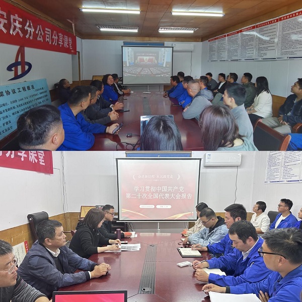 安慶分公司黨支部精心組織及時學(xué)。組織全體員工收聽收看黨的二十大開幕會、中共中央介紹解讀黨的二十大報告新聞發(fā)布會,通過電視、網(wǎng)絡(luò)、廣播等多種渠道及時了解和關(guān)注大會盛況,第一時間學(xué)習(xí)領(lǐng)會黨的二十大精神。組織購買《黨的二十大輔導(dǎo)讀本》、新修改的《中國共產(chǎn)黨章程》學(xué)習(xí)用書,向黨員干部發(fā)放,通過黨員大會、黨員活動日、黨員帶頭領(lǐng)學(xué)等形式,為全面深入學(xué)習(xí)黨的二十大精神,安慶分公司全體黨員領(lǐng)導(dǎo)干部堅持精研細讀黨的二十大報告、黨章等大會文件,全面系統(tǒng)地領(lǐng)會和把握黨的二十大精神,在真學(xué)真懂、真悟真用上作好表率、走在前列,帶動全分公司上下迅速掀起學(xué)習(xí)宣傳貫徹黨的二十大精神熱潮。