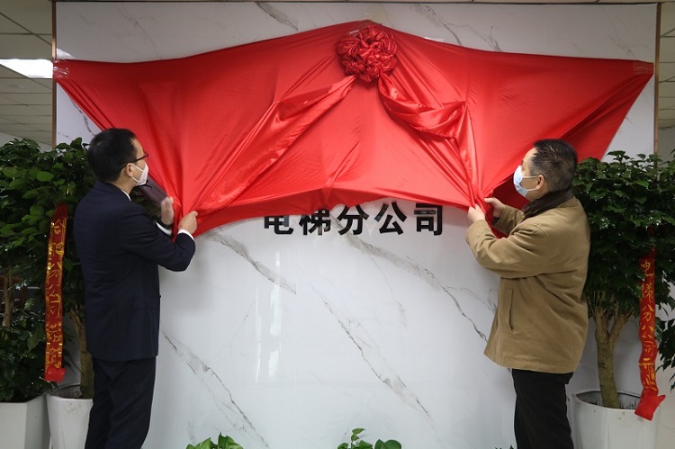 黨委書記、董事長胡六中和電梯分公司經(jīng)理龍海健共同揭牌
