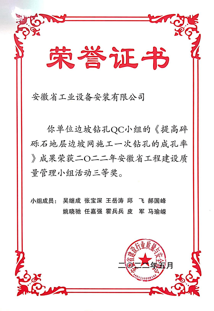 一是堅持圍繞生產經營中心任務,統籌兼顧“安全穩定”與“深化發展”,實現企業穩定有序發展。1.分公司定期對已完工未決算及已完工已決算項目進行梳理排查,做好歷史遺留問題的妥善處理。2.分公司承攬的寧夏致信高速項目,在項目管理建設過程中,分公司黨員干部帶頭深入一線,調查研究,攻堅克難,為圓滿完成項目建設做出了積極貢獻。項目部提報的邊坡鉆孔《提高碎碩石地層邊坡網施工一次鉆孔的成孔率》的研發成果取得了2022年安徽省工程建設質量管理小組活動三等獎的好成績。3.分公司積極與公司各部門協調溝通,做好分公司信訪維穩工作,協調解決了內蒙古家景鎂業項目和奇瑞鄂爾多斯藍領公寓擋土墻加固墻項目農民工到公司上訪事件,消除影響公司穩定的不良因素,切實維護了公司發展穩定大局。
