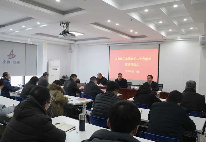 1月18日下午,建工控股黨委委員、副總經理盛明宏率集團第八宣講組赴安徽安裝宣講黨的二十大精神并開展調研座談。股份公司黨委委員、副總經理黃代,集團投資管理部部長孫仁發,安徽安裝領導班子成員、機關部門負責同志參加宣講座談。