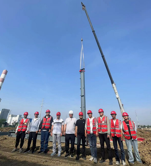 丙類車間鋼架順利開吊是該工程一個重要里程碑節點。為確保進展順利,吊裝前,項目部組織專業人員對吊裝方案、安全措施、質量標準、起吊機械等進行詳細審查,開展現場土建交付安裝前的條件確認,項目經理現場指揮,安全管理人員全程監控,保證鋼結構吊裝能夠高標準開吊,為后續安裝工作奠定堅實基礎。