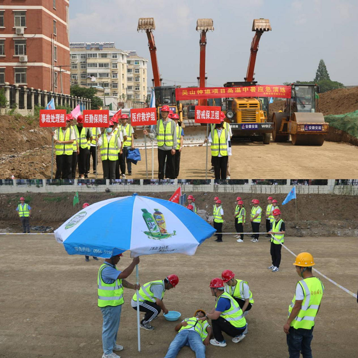 市政分公司吳山神道改造及周邊綠化提升項目部舉行2023年“安全生產月”活動啟動儀式并開展了防高溫中暑應急演練活動。