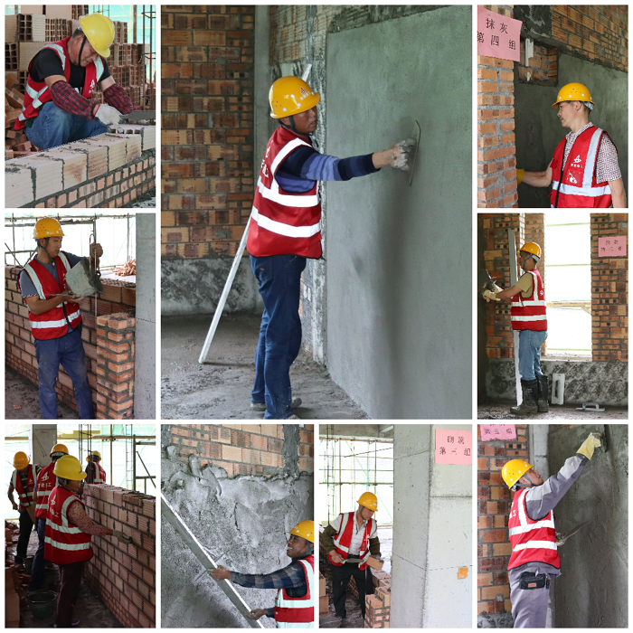 房建(裝飾)分公司阜南污水處理廠改擴建項目舉行2023年“安全生產月”活動啟動儀式,并舉行了“學思踐悟二十大 崗位比武促發展”砌筑、抹灰技能大賽活動。