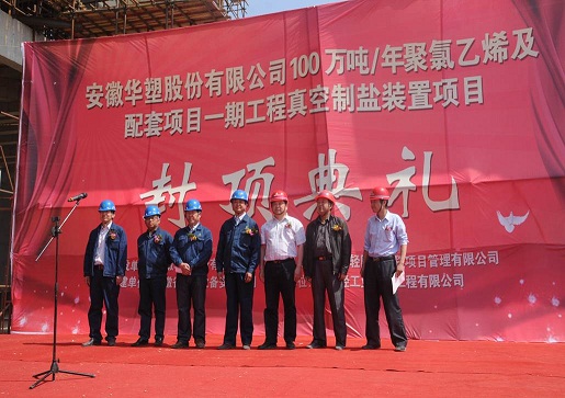 2011年4月28日,安徽省工業設備安裝公司滁州分公司承建的安徽華塑項目工程施工現場,到處場洋溢著一片祥和、喜慶的氣氛。上午10:18分,迎來了安徽華塑真空制鹽鹽硝車間土建主體結構封頂儀式。公司總經理王軍幫、副總經理劉安俊,華塑公司黨委書記黃家發、 副總經理梁東風,北京中輕國際工程管理有限公司現場總監郭均川等領導應邀出席了封頂儀式。本工程從開工到土建主體結構封頂,在質量、安全、進度等方面受到了業主和監理單位的一致好評,并獲得華塑園區二十多家施工單位綜合評比第二名得好成績。真空制鹽主體結構施工進度上創造了全國最短時間,為公司在今后進一步占領鹽化工程市場打下了堅實的基礎。