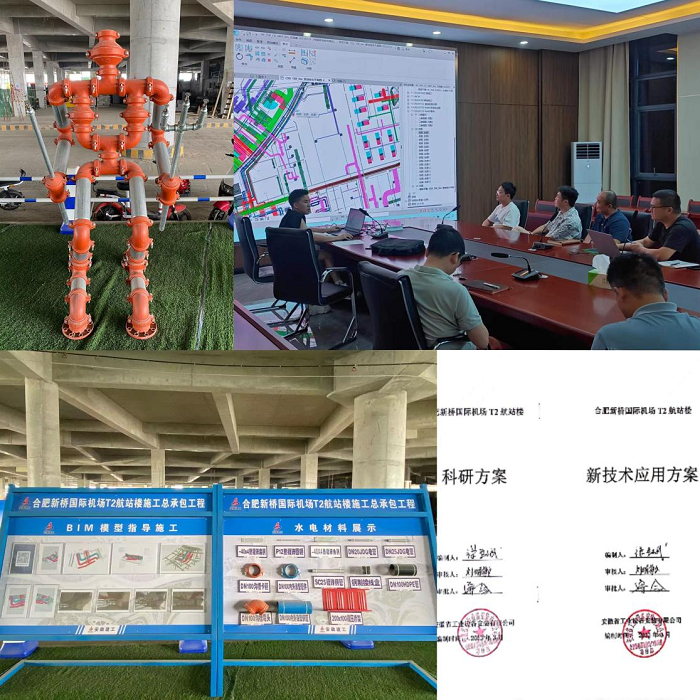 建工安裝新橋國際機場T2航站樓機電安裝項目,位于合肥市新橋國際機場場區內,公司承接的施工范圍包括航站樓南北指廊給排水系統、采暖、通風空調系統、消防及電氣系統安裝等,合同總造價2.747億元,合同工期總日歷天數941天,計劃于2025年10月15日竣工。本工程為省一號重點工程,工程體量大,建筑空間大,施工內容多、難度大、工期緊,質量要求高。自開工建設以來,項目部結合實際,通過設立“黨員示范崗”和成立黨員技術攻關小組,助推項目建設“加速度”。項目黨員同志帶頭研究新工藝、創新使用新方法,大力開展技術攻關,通過不斷摸索實驗,逐步形成了以BIM+“樣板引路”的智慧施工管理模式,在充分發揮黨員先鋒模范作用的同時,進一步提高生產效率和工程質量,促進黨建和生產經營有效融合。