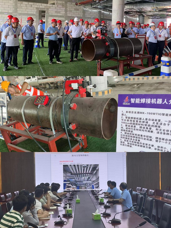 在技術攻關小組成員的帶領下,項目部積極響應國家“雙碳”目標和智能建造要求,創新運用智能焊接機器人代替人工焊接,確?!皹影逡贰狈€定高效實施。技術攻關小組成員經過數次考察試驗,結合實際引入了MK-700WTIG管道焊接小車,它體積小,重量輕,安裝、拆卸和移動方便,兼具標準角焊機簡易輕便的特點,避免了人為因素所造成的焊縫和質量不高現象,可以大幅度提高焊接效率,減少材料損耗和施工返工率,進一步提高生產效率。技術攻關小組先后編制了智能焊接機器人操作指南和工藝視頻,有效幫助指導現場項目人員更好地掌握運用智能焊接機器人技術。通過“BIM+智能焊接機器人”方式,項目部形成了高質量、高標準和穩定的現場施工模式以及數字化、智能化的智慧管理模式,大力推動項目智能建造體系的構建,助推項目降本增效。