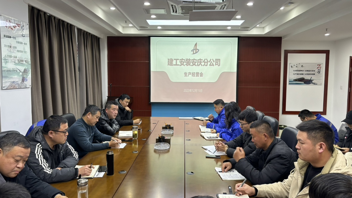 2023年12月15日,安慶分公司召開12月份生產經營會,分公司領導班子、部門負責人、項目經理及技術骨干參會,會議由分公司副經理方斌主持。