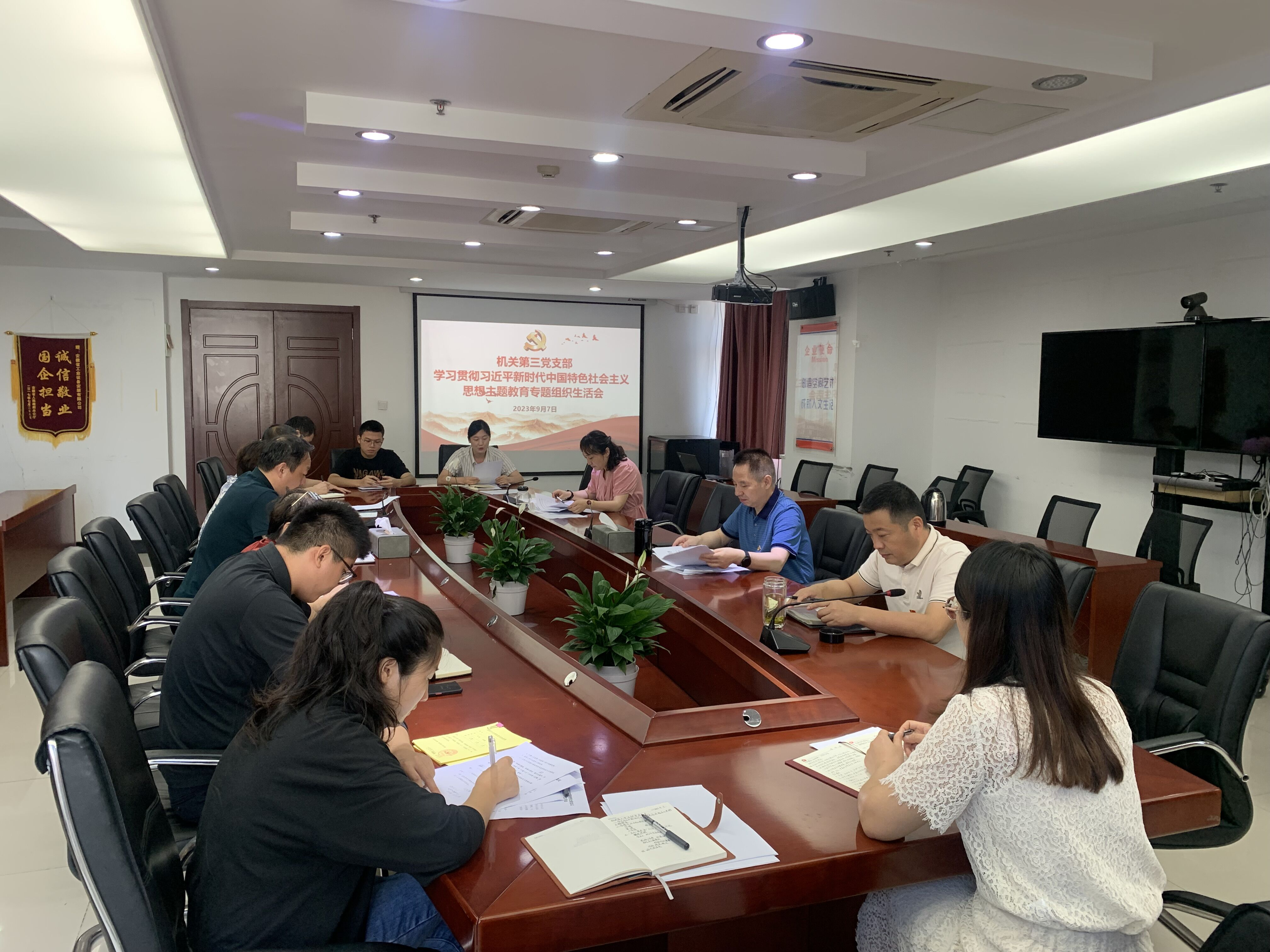 9月7日上午,建工安裝公司機(jī)關(guān)第三黨支部組織召開學(xué)習(xí)貫徹習(xí)近平新時(shí)代中國特色社會(huì)主義思想主題教育專題組織生活會(huì)。公司黨委書記、董事長胡六中以普通黨員身份參加會(huì)議,會(huì)議由黨支部書記王敏主持。