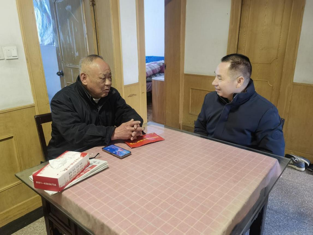 2月4日上午,胡六中來到老黨員、老勞模朱啟德家中。朱啟德老人曾于1988年榮獲安徽省勞動(dòng)模范、1989年榮獲省直單位優(yōu)秀黨員,機(jī)械八大系統(tǒng)優(yōu)秀黨員;1995年榮獲五一勞動(dòng)獎(jiǎng)?wù)隆不帐∈芄で山场:信c朱老促膝交談,耐心詢問他的身體狀況和家庭生活情況,感謝他為公司發(fā)展作出的貢獻(xiàn),叮囑老人要保重身體,在大雪天注意防寒保暖,并預(yù)祝他新春快樂,幸福安康。