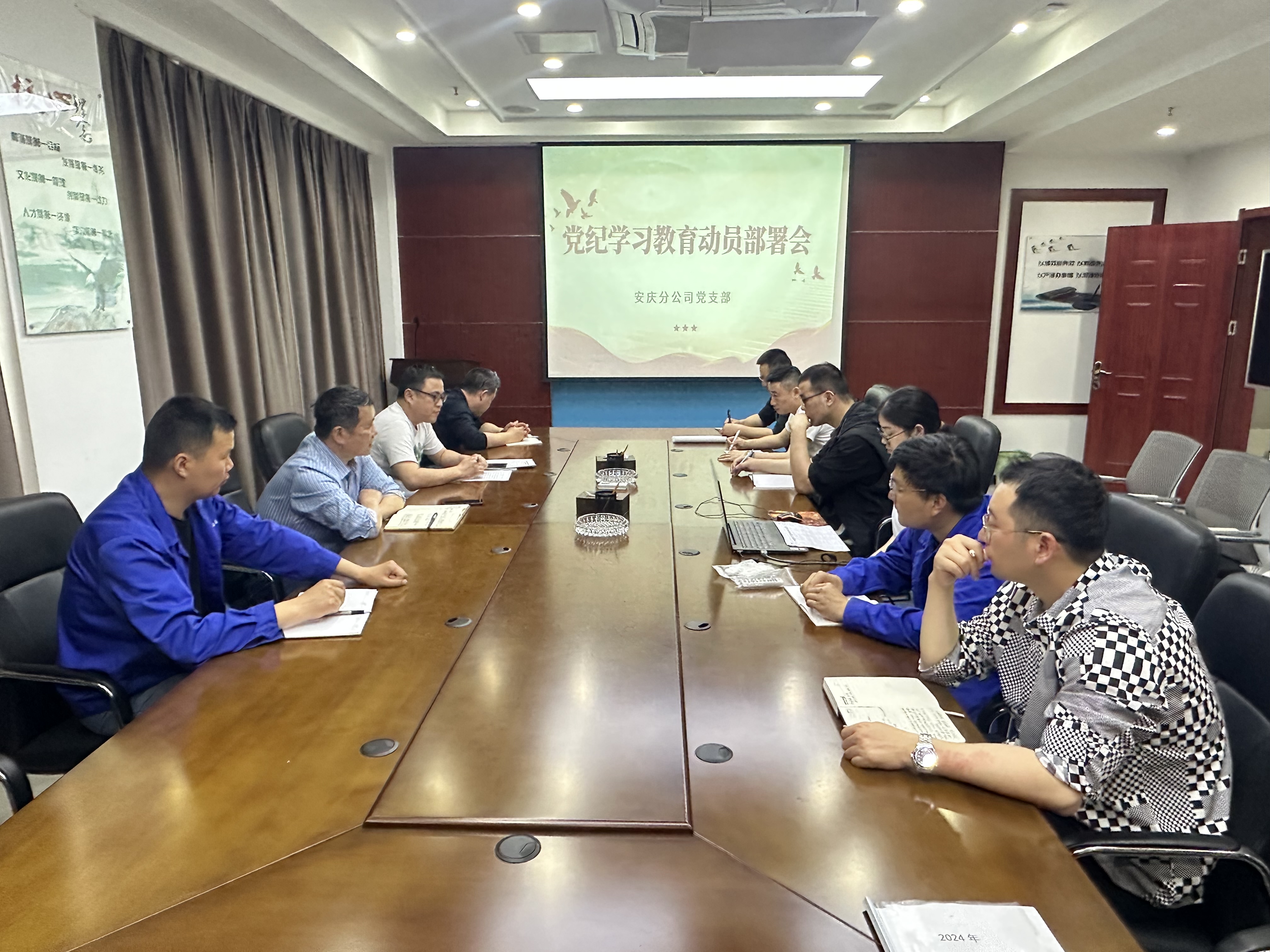 4月26日,安慶分公司召開黨紀學習教育工作動員部署會,傳達學習習近平總書記關于黨紀學習教育的重要講話和重要指示精神,貫徹落實中央黨的建設工作領導小組會議精神,集中學習《中國共產黨紀律處分條例》部分章節,學習典型案例通報,研究部署分公司黨紀學習教育工作。