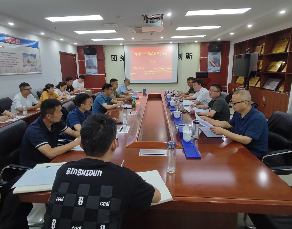 6月12日上午,蚌埠分公司組織召開6月份生產(chǎn)會,分公司領(lǐng)導(dǎo)班子、所屬各項目經(jīng)理、機關(guān)各部門負(fù)責(zé)人及工程管理部全體員工參加會議,會議由分公司副經(jīng)理張斌主持。