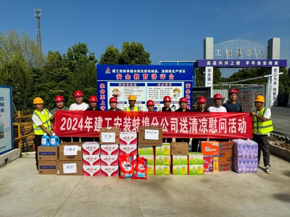 分公司領(lǐng)導(dǎo)班子先后到六鋼大廈(酒店)工程施工總承包項(xiàng)目、蚌埠高新區(qū)電子信息產(chǎn)業(yè)園EPC項(xiàng)目室外廊架管網(wǎng)工程項(xiàng)目、年產(chǎn)2000噸氯蟲苯甲酰胺原藥及中間體項(xiàng)目、安徽深巖醫(yī)藥化工科技有限公司醫(yī)藥中間體及新材料項(xiàng)目廠區(qū)單體工程項(xiàng)目、水刺無(wú)紡布制品.濕廁紙生產(chǎn)項(xiàng)目現(xiàn)場(chǎng),為一線施工人員準(zhǔn)備了礦泉水、冰紅茶、綠豆、西瓜等防暑降溫物品,對(duì)他們的辛勤付出表示感謝,并反復(fù)叮囑大家要注意防暑降溫,合理安排施工和休息時(shí)間,確保施工安全。