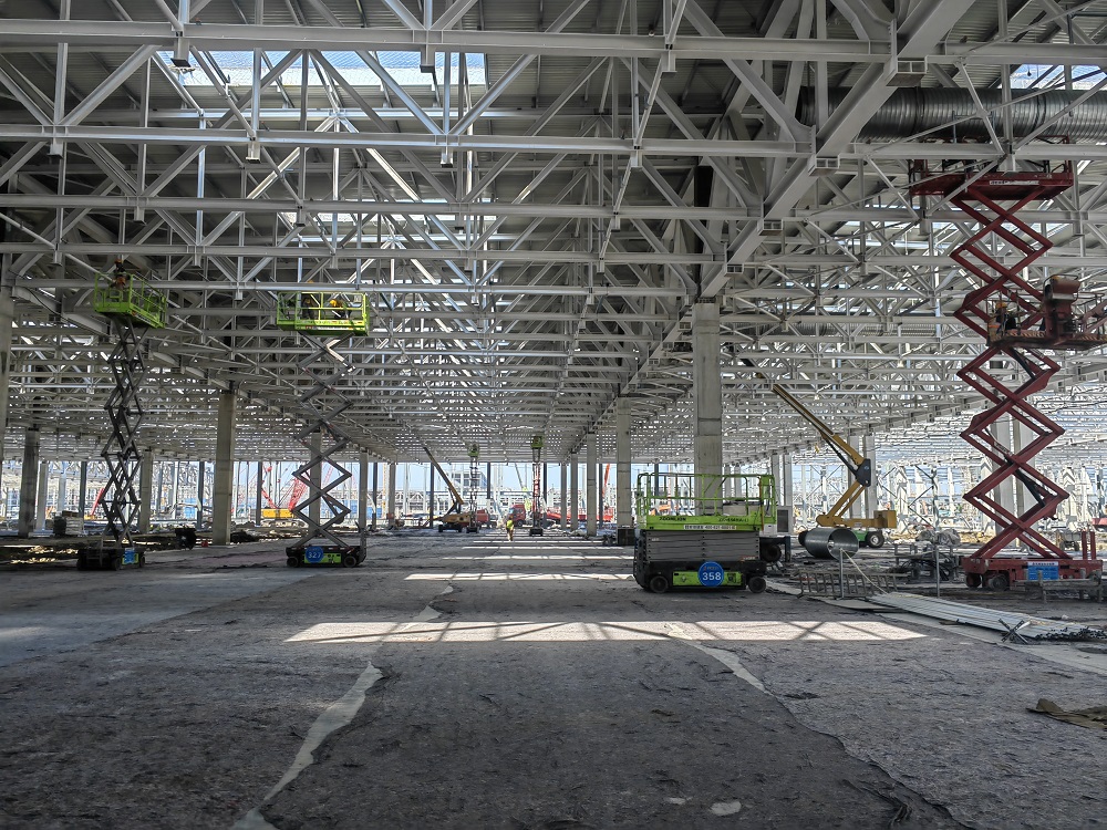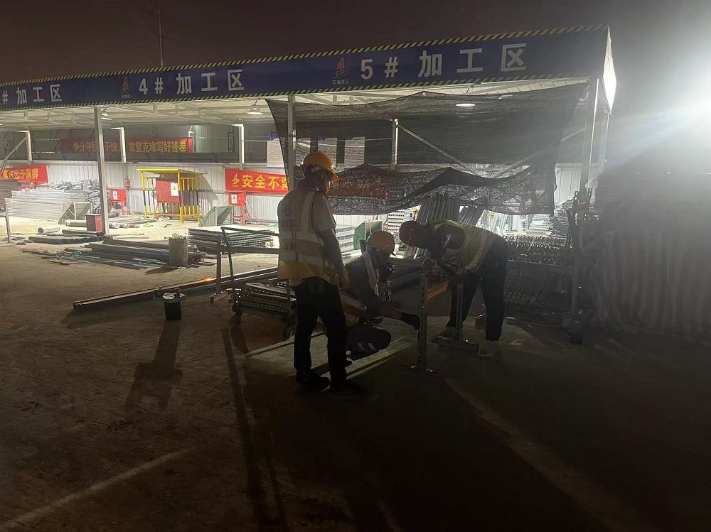 項(xiàng)目部全體管理人員緊抓施工節(jié)點(diǎn),緊跟土建、鋼結(jié)構(gòu)單位施工進(jìn)度,全力統(tǒng)籌人、材、機(jī)合理高效入場(chǎng),根據(jù)現(xiàn)場(chǎng)施工情況逐步優(yōu)化各專(zhuān)業(yè)施工方案,全力推進(jìn)施工進(jìn)度。目前,車(chē)間一整體防雷接地已完成60%,QA辦公樓預(yù)埋已完成90%,隨著土建單位工作面的交接,車(chē)間一5區(qū)、6區(qū)正在進(jìn)行成品支架、虹吸雨水管道、排水管、通風(fēng)管道等施工作業(yè)。