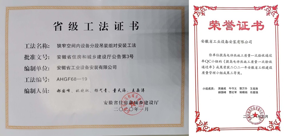 在繁忙的工作之余,姚曉馳對專業(yè)知識的探索與熱愛從未有片刻停歇。他仿若一位求知若渴的行者,積極主動地在知識的海洋中破浪前行,持續(xù)拓寬并深化自身的知識體系。他參與研發(fā)的《狹窄空間內(nèi)設(shè)備分段吊裝組對安裝工法》成功榮獲安徽省住房和城鄉(xiāng)建設(shè)廳頒發(fā)的省級工法稱號,《提高電伴熱施工質(zhì)量一次驗收通過率》也榮獲了安徽省工程建設(shè)質(zhì)量管理小組成果三等獎。